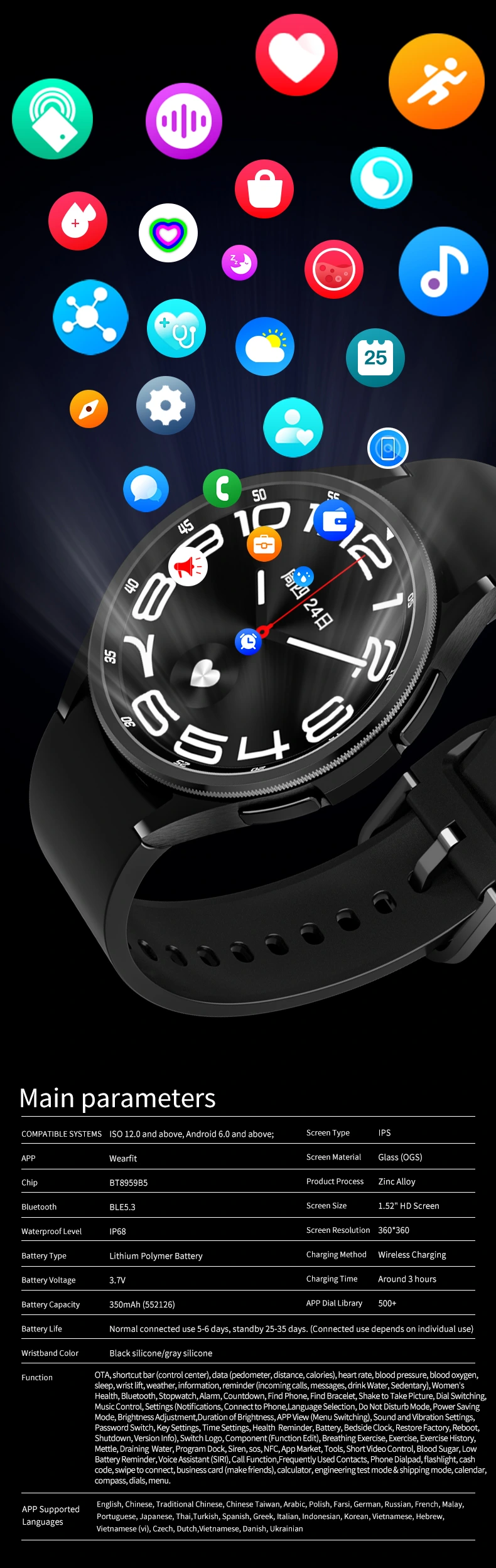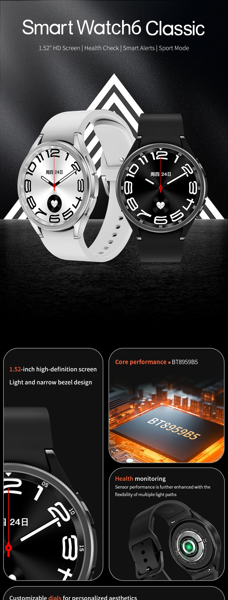 Classic 6 Smart watch 1.52inch Round Screen