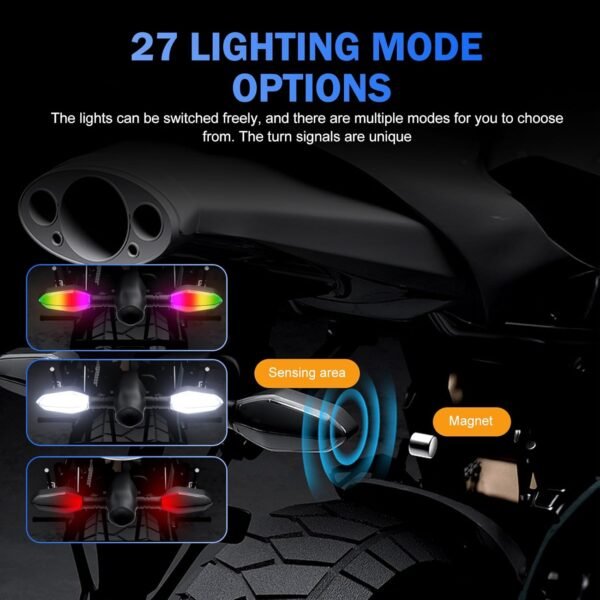 Includes customizable RGB lighting effects like flowing, gradient, and solid colors, giving your motorcycle a unique and eye-catching appearance. Note: RGB modes only work if your motorcycle has daytime running light wiring.